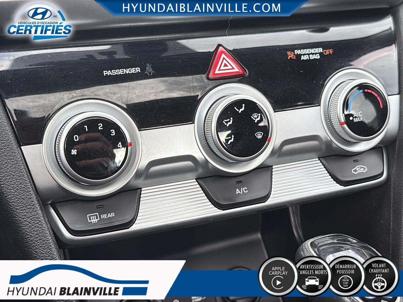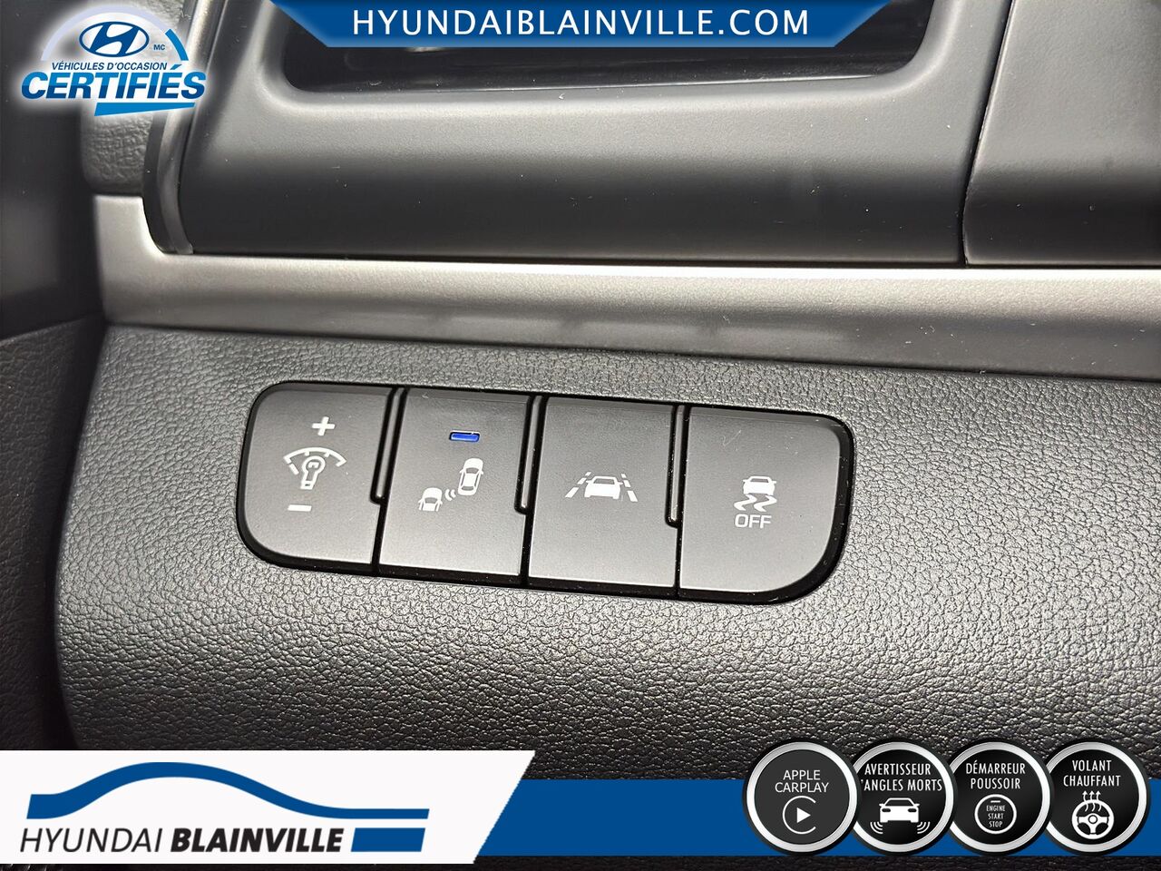 Tous nos véhicules sont inspectés en 120 points et les réparations nécessaires ont été effectuées. -Rapport d'historique Carfax pour chaque véhicules ! Chez Hyundai Blainville, nous investissons dans nos véhicules d'occasion. Nous effectuons toutes les réparations nécessaires pour que votre prochain véhicule soit presque neuf. Avec la Promesse-H de Hyundai, vous serez assuré, sachant que votre véhicule a fait l'objet d'un service supérieur et dune méticuleuse at tention aux détails. Il faut qu'il soit à la hauteur du programme de certification Promesse H de Hyundai et bien entendu, également à la hauteur de vos attentes. Nous sommes au sommet du classement dans le nombre de véhicules que nous certifions Promesse-H chez Hyundai.Nous sommes situés à proximité de Montréal,Laval,Rive-Nord,Rive-Sud,l'Estrie et les Laurentides,Nous avons de toutes marques et de tout les modèles dans notre inventaire, berline, hatchback,V.U.S.,tout-terrain,à hayon, camion, sedan, S.U.V.,AWD, 4x4